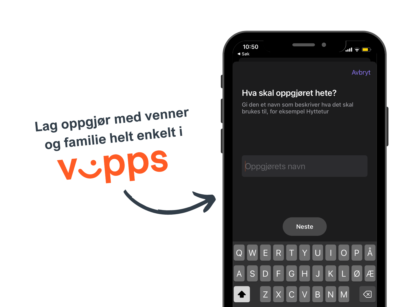 - Gi oppgjøret et navn (for eksempel: "Hyttetur") og klikk "Neste"